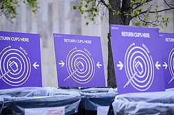 Auch in diesem Jahr setzen wir vollständig auf Mehrwegbecher. Und auf euch. Damit wir gemeinsam Ressourcen schonen und Abfall reduzieren, könnt ihr eure Becher während der Veranstaltung mehrfach nutzen und erst dann zurückgeben, wenn ihr sie nicht mehr benötigt. Die Rückgabe dafür ist sowohl an der Ausgabestation als auch an unseren mobilen Rückgabestationen möglich. Durch unsere weiß-grünen Hinweisschilder kann man sie kaum verfehlen. Vielen Dank für eure Unterstützung!